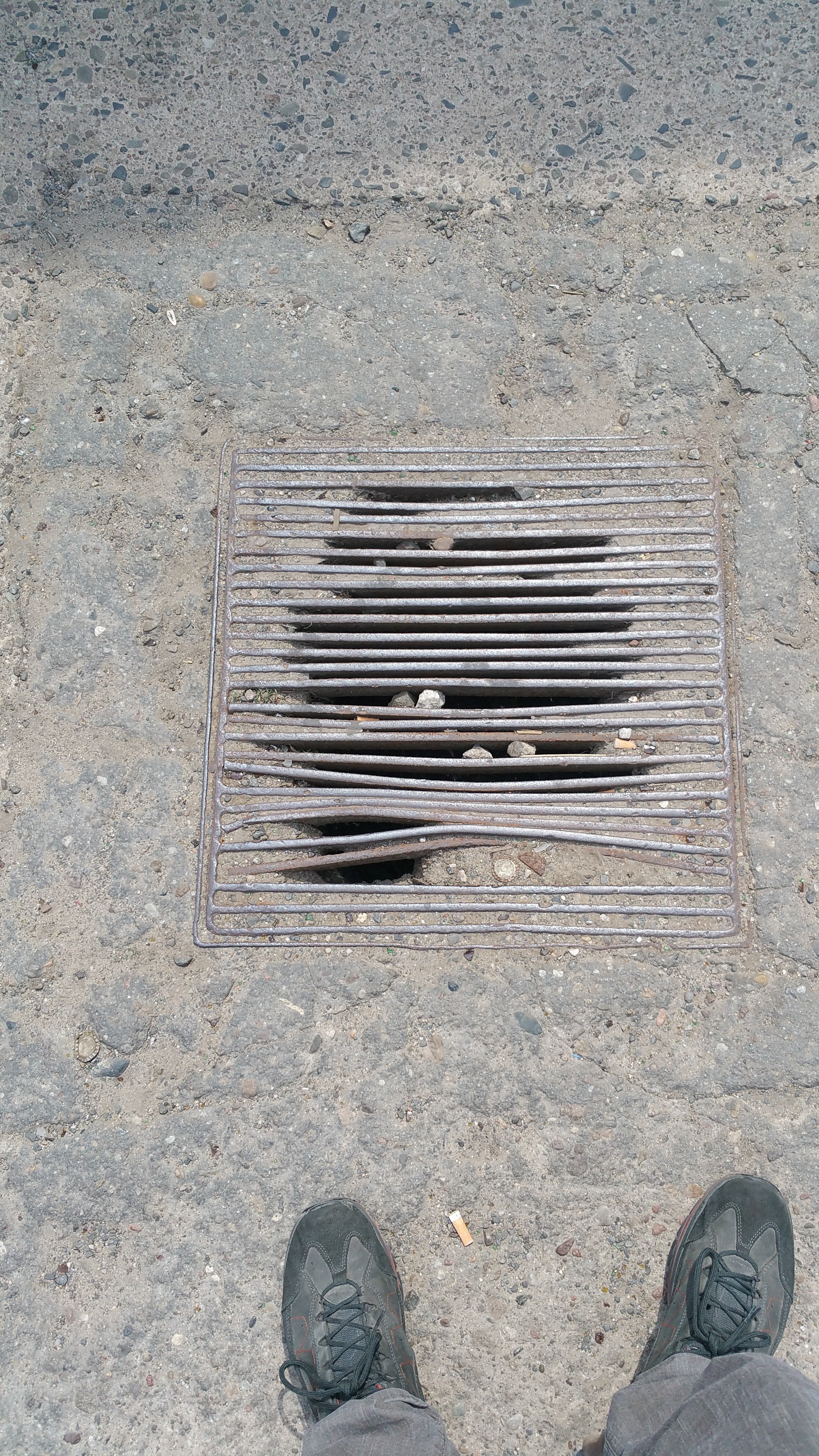 Dieser geteilte Schachtdeckel ist in der Stadt weit verbreitet. Immer wieder habe ich ihn fotografiert und ab 1998 auch als Druckstock verwendet, siehe unten.